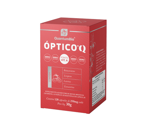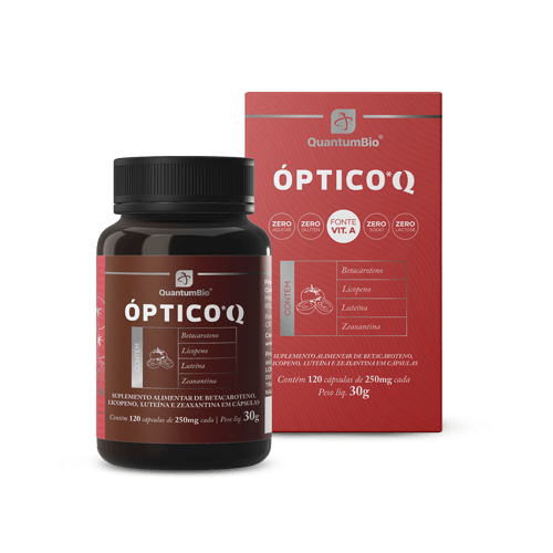Produto destinado à saúde ocular, composto à base de carotenoides de origem natural presentes em legumes, verduras e frutas, sendo o licopeno de tomate, betacaroteno da cenoura, luteína e zeaxantina da flor Tageres erecta. O Óptico*Q é rico em antioxidantes e potencializado por padrões vibracionais: